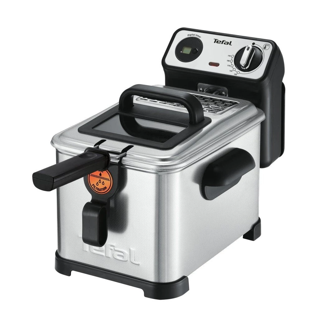 Filtra Pro kan volledig worden gedemonteerd en alle onderdelen, met uitzondering van de verwarmingselementen, zijn vaatwasmachinebestendig. Je kunt de temperatuur instellen tussen 150°C en 190°C en de bereidingstijd kiezen met behulp van de digitale timer. Je kunt de bereiding ook in de gaten houden dankzij het kijkvenster in het deksel. Het deksel kan worden gebruikt tijdens het frituren en is uitgevoerd met een permanent metalen filter.