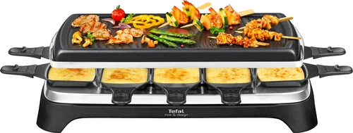 Met de Tefal Gourmet 10 Inox & Design RE4588 gourmet je tot 10 personen. Dankzij het hoge vermogen van 1.350 watt is het gourmetstel snel opgewarmd. De Tefal Thermo Signal-stip kleurt effen rood wanneer hij op temperatuur is. Handig, want zo weet je precies wanneer je de ingrediënten op de grillplaat legt. Verder gebruik je het gourmetstel tegelijkertijd ook als raclette. Zo smelt je in het pannetje een plakje kaas voor bijvoorbeeld je cheeseburger. Na gebruik was je de plaat met de hand af. Het netsnoer koppel je los van de grill, zodat je `m gemakkelijk opbergt in je keukenkastje.