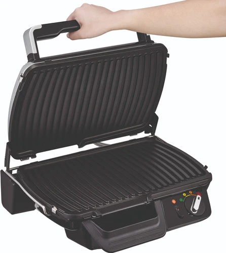 De Tefal Grill Supergrill XL GC461B12 is een contactgrill van flink formaat en komt goed van pas voor verschillende bereidingen. Als vanzelfsprekend maak je er een lekkere tosti of panini mee. Maar ben jij dol op grillen, dan leg je er een flinke biefstuk op. Schakel de temperatuurboost in om het vlees goed aan te braden; resultaat is een krokante buitenkant en een sappige binnenkant. Ook als jij niet zo van het vlees bent, is deze contactgrill nog steeds een handige hulp in de keuken. Je grilt er namelijk ook groentes en vis mee. Overtollig vet komt terecht in de hiervoor bestemde opvangbak. Naar de afwas heb je geen omkijken want de losse onderdelen zijn vaatwasmachinebestendig.