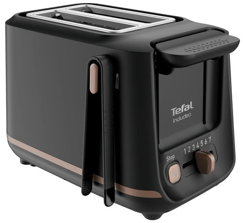 Met de Tefal Incluedo toaster TT5338 heb je geen last van verbrande vingers, dankzij de meegeleverde tang. Je hangt de tang na gebruik aan het broodrooster, zodat je ‘m niet kwijt raakt. De sleuven passen de breedte aan, aan de dikte van jouw brood. Zo zit het broodje altijd in het midden en bruint ‘ie egaal. Het broodrooster is eenvoudig te bedienen door de grote knoppen. Met de 7 standen pas je de bruiningsstand nauwkeurig aan, aan jouw smaak. Vind je jouw brood bruin genoeg, maar is het apparaat nog bezig met roosteren? Druk dan op de stop knop. Je maakt het broodrooster eenvoudig schoon, dankzij de uitneembare kruimellade.