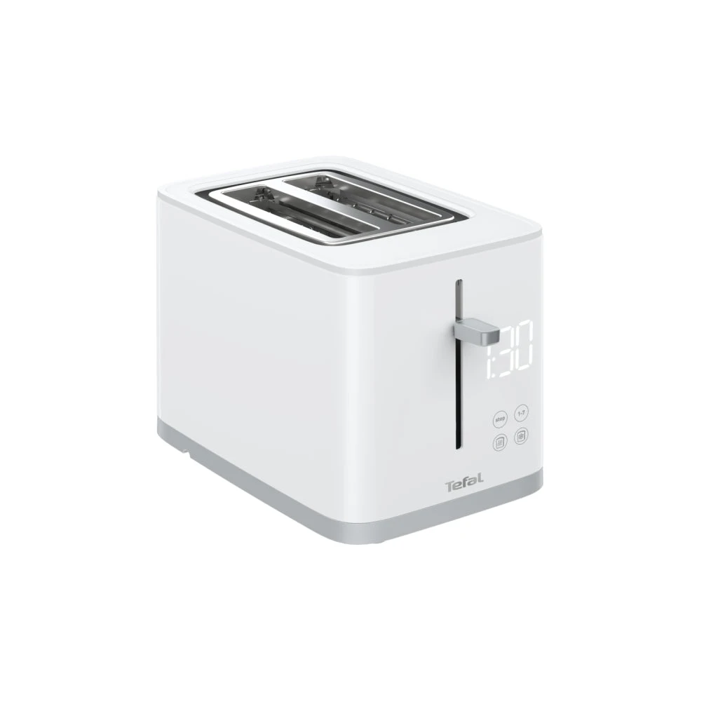 Deze intuïtieve, slimme broodrooster is net zo mooi als dat hij functioneel is. De Tefal broodrooster met twee sleuven laat je genieten van perfect geroosterd brood, precies zoals jij het, het liefst hebt. Sla je favoriete instellingen op en maak gebruik van de digitale timer en zeven bruiningsstanden. Met de handige functies en het moderne design maak je met slecht één druk op de knop heerlijke toast.