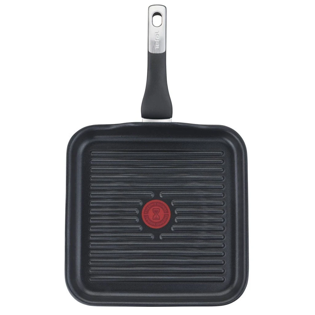Metalen spatels zijn geen partij voor de Tefal Unlimited grillpan. Geen plakkende ingrediënten en geen krassen: de juiste grillpan kan al het verschil maken. De Tefal Unlimited grillpan biedt krasvastheid van een nieuw niveau. De gloednieuwe Titanium coating gaat lang mee. De Thermo-Signal? in de bodem van de pan laat je weten wanneer de pan de juiste temperatuur heeft bereikt. Zo blijven texturen, kleuren en smaken behouden en behaal je keer op keer perfect resultaat. Dankzij de ribbels in de bodem van de pan maak je perfecte grillstrepen. Met de Tefal Unlimited pannen maak je moeiteloos de beste gerechten in je keuken.