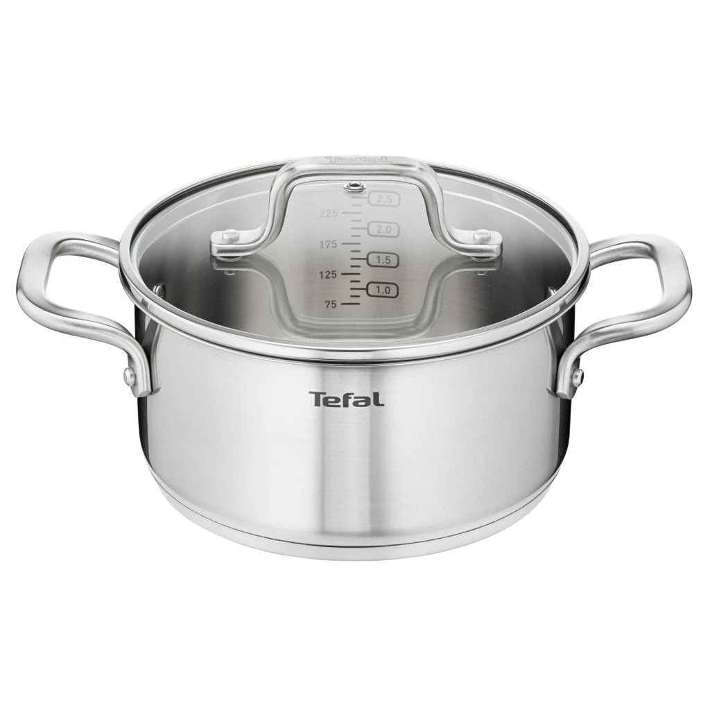Met de Tefal Virtuoso kookpan haal je een goede basis in huis voor veel gerechten. De pan is er geschikt om aardappels, pasta en groenten koken. Dankzij het hoogwaardige 18/10 roestvrij staal en het robuuste design gaan de pannen ook zeer lang mee. Dat is ook precies de reden waarom deze pan met 10 jaar garantie wordt geleverd. Stevige, geklonken roestvrijstalen handvatten zorgen voor een heel nieuw niveau van stabiliteit onder het koken, zodat je vol vertrouwen in de keuken kan staan. De glazen deksel en duidelijk zichtb are maatverdeling maken deze pannenset makkelijk in gebruik.